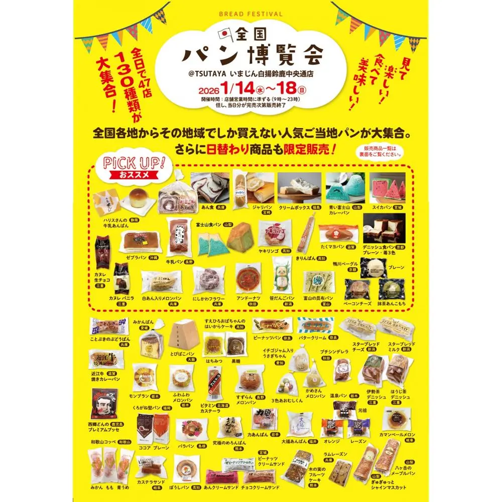 【鈴鹿市】全国の人気パンが大集合「パン博覧会」開催!【TSUTAYA いまじん白揚鈴鹿中央通店】